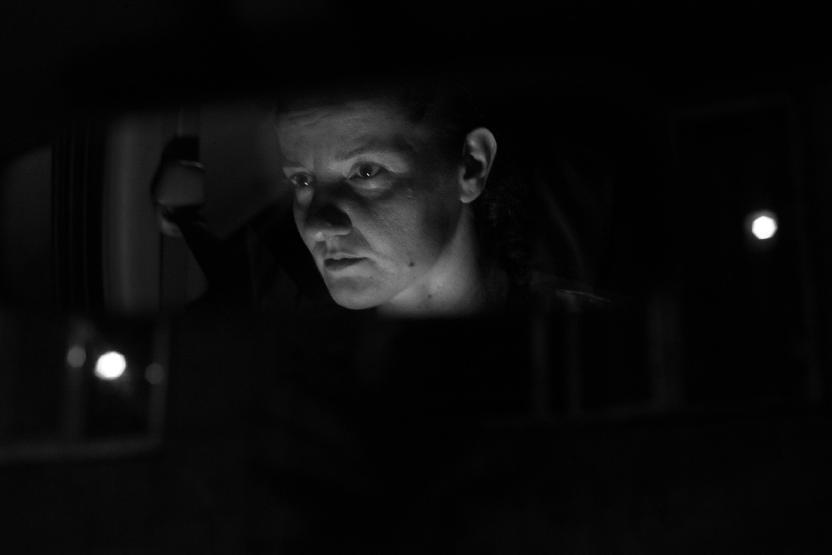 The rearview mirror of my car is 7×25 cm. It is my vantage point allowing me to observe the people in the back seat, see what they are looking at, what their gaze is like, the intensity with which they carry their own thoughts. On each journey from point A to point B in the back seat of this car, each of them carried along a small segment of their day’s story, which was different from my story or the story of the next passenger but these stories intersected on a 7×25 surface.